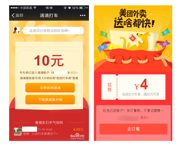 ① 滴滴和美團(tuán)外賣的紅包