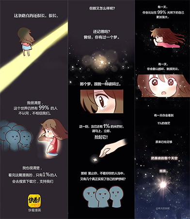 《對不起,我只過1%的生活》用漫畫的載體,以非常逗萌的方式講述了一個關(guān)于夢想的故事。漫畫中的文案都是描述日常生活當(dāng)中的片段,這些細(xì)節(jié)很容易勾起人的感受,產(chǎn)生情懷。