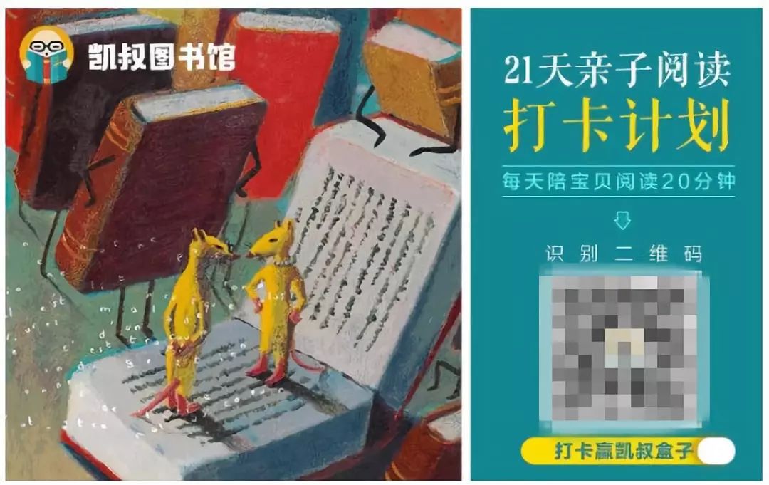 凱叔圖書館的做法就很高明,瞄準(zhǔn)了“陪讀”這一需求,在今年上半年舉辦多次“21天親子閱讀打卡計(jì)劃”活動(dòng),每天20分鐘,陪寶寶讀書21天,每天簽到就有機(jī)會(huì)獲得獎(jiǎng)品,把活動(dòng)推薦給更多人的寶媽寶爸,還可以獲得“推薦大獎(jiǎng)”。成功利用了家長的微信關(guān)系鏈把活動(dòng)傳播出去,還順勢(shì)把自家“凱書盒子”這一產(chǎn)品大肆了宣傳了一把。