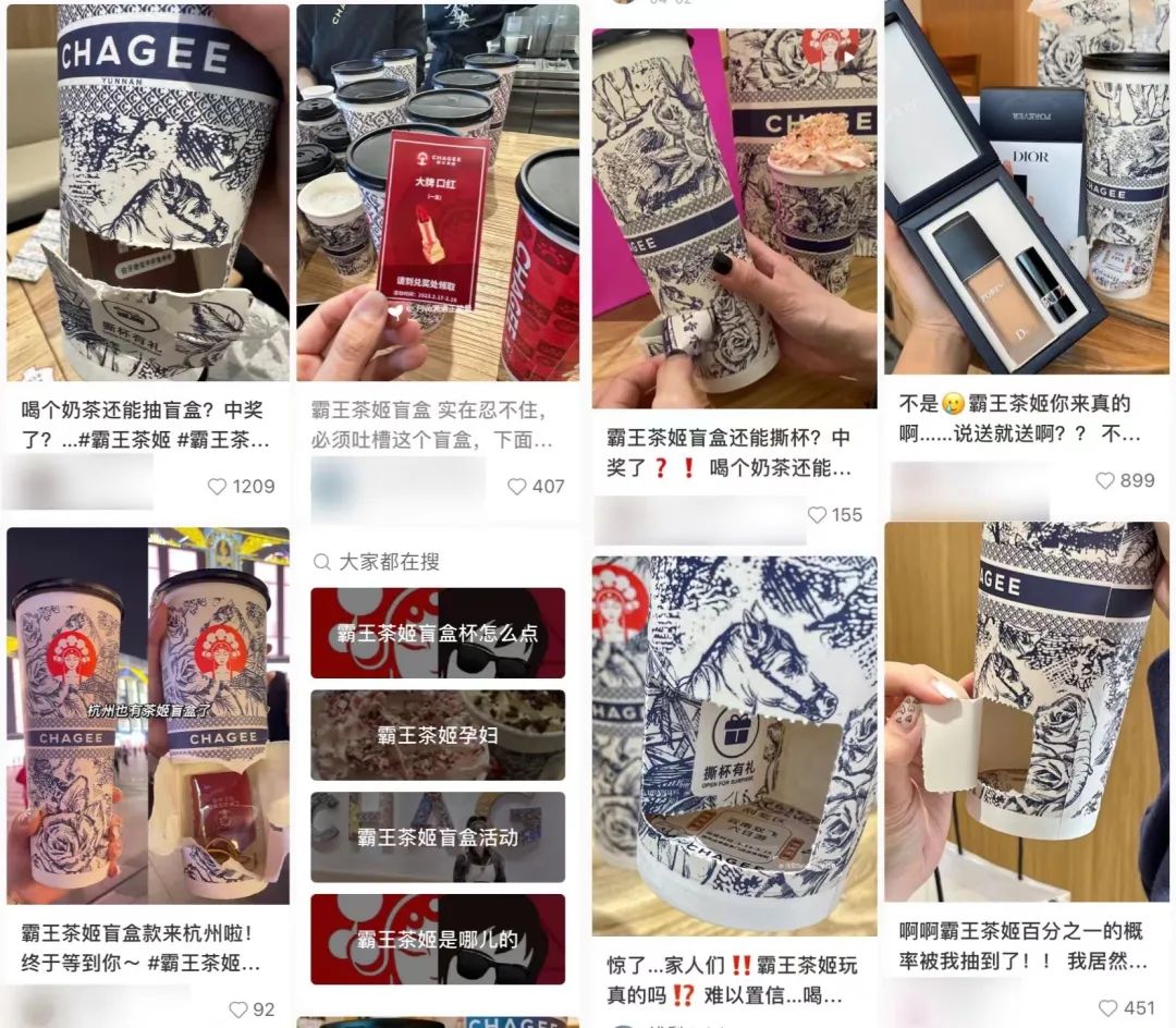 今年爆火的雪王、青蛙互相傷害迅速出圈,蜜雪冰城有新品推出時,雪王的圖像以及Logo總是會率先被看到。例如霸王茶姬的口紅盲盒奶茶,買奶茶可拆口紅盲盒,即引起了用戶購買產(chǎn)品的好奇心,用戶還能成為品牌的“自來水”,在各個社交媒體上分享她的獲得感。